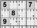 Setting up the 'start' numbersOnce the puzzle has been set up it displays the possible numbers in other empty cells as hints.